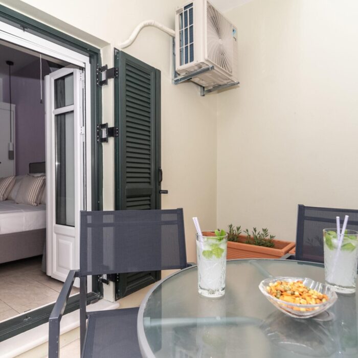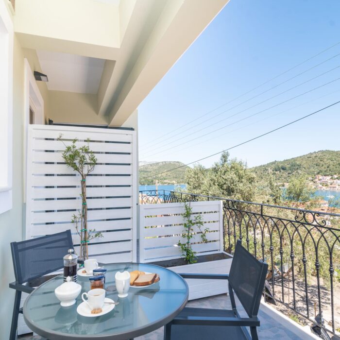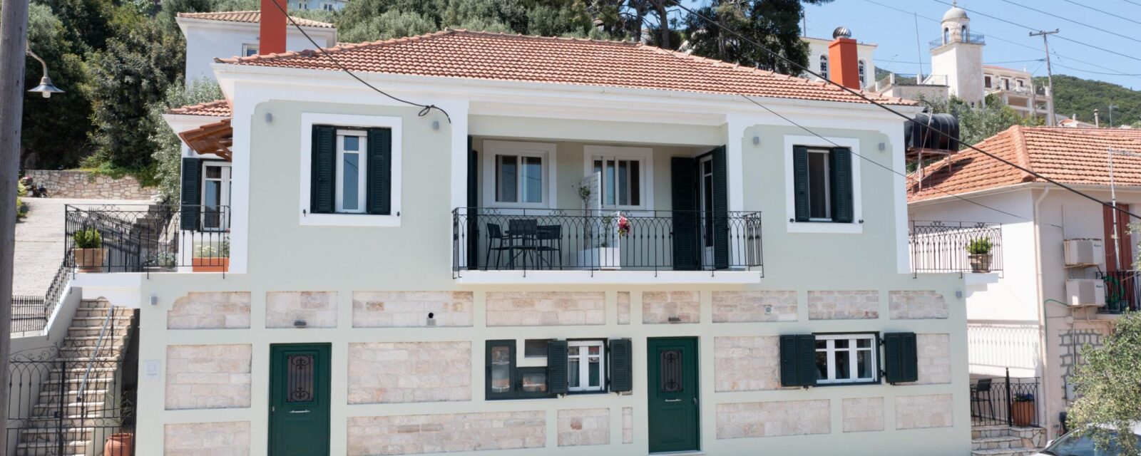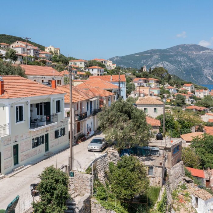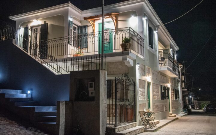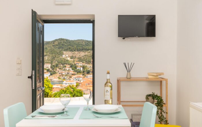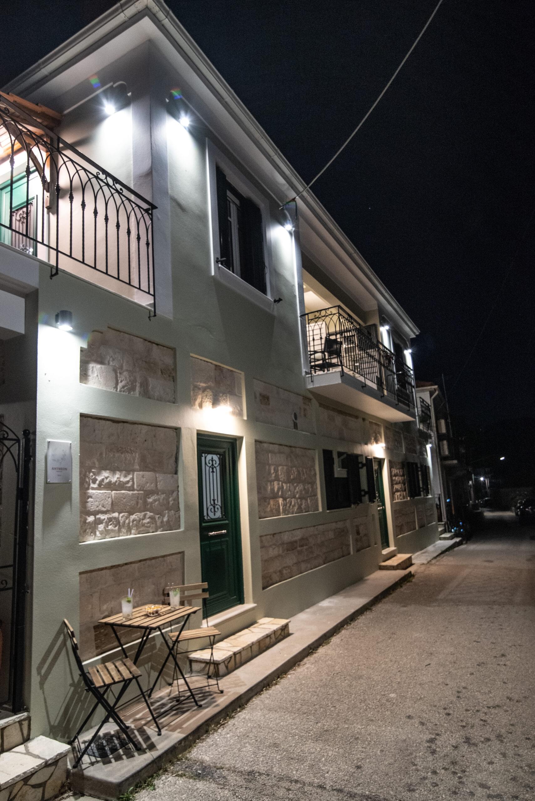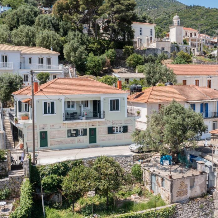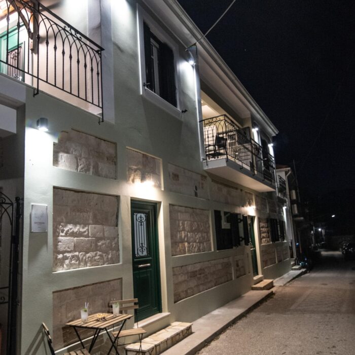 The stone-built, recently renovated neoclassical building that houses the Antheon apartments is located in the Mazarata area in Vathy, Ithaca.