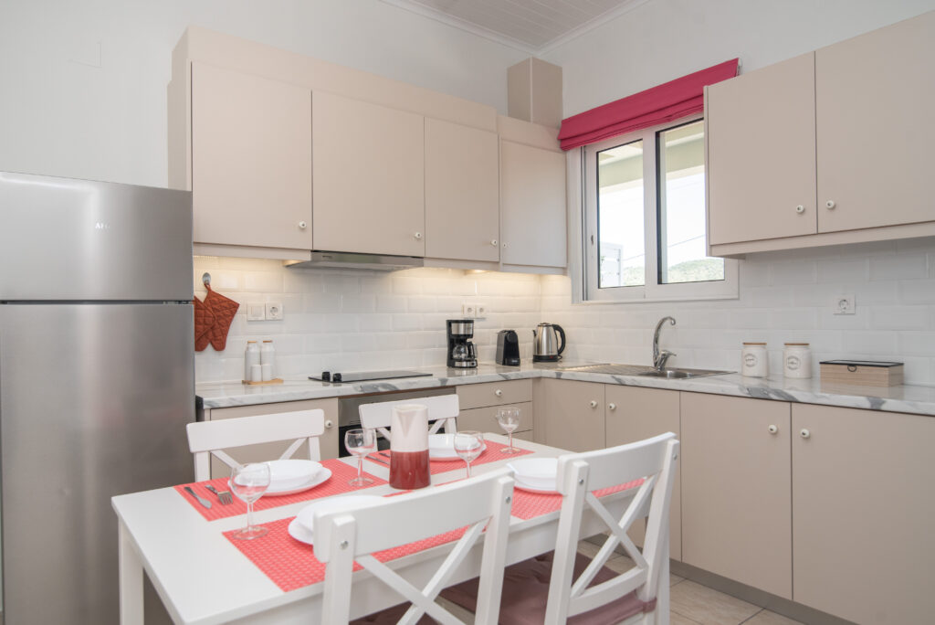 The apartment named Rose, the king of the flowers which symbolises love and beauty, is situated on the first floor and is 46 m2. It consists of a bedroom, an open kitchen / dinning room / living room area, a private bathroom and two balconies.