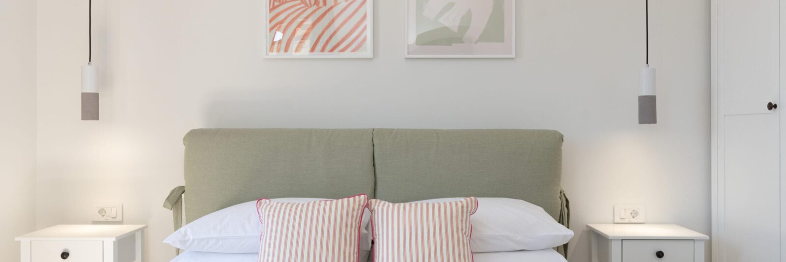 In the living room there is air-conditioning and a sofa convertible into a single bed to accommodate a third guest.